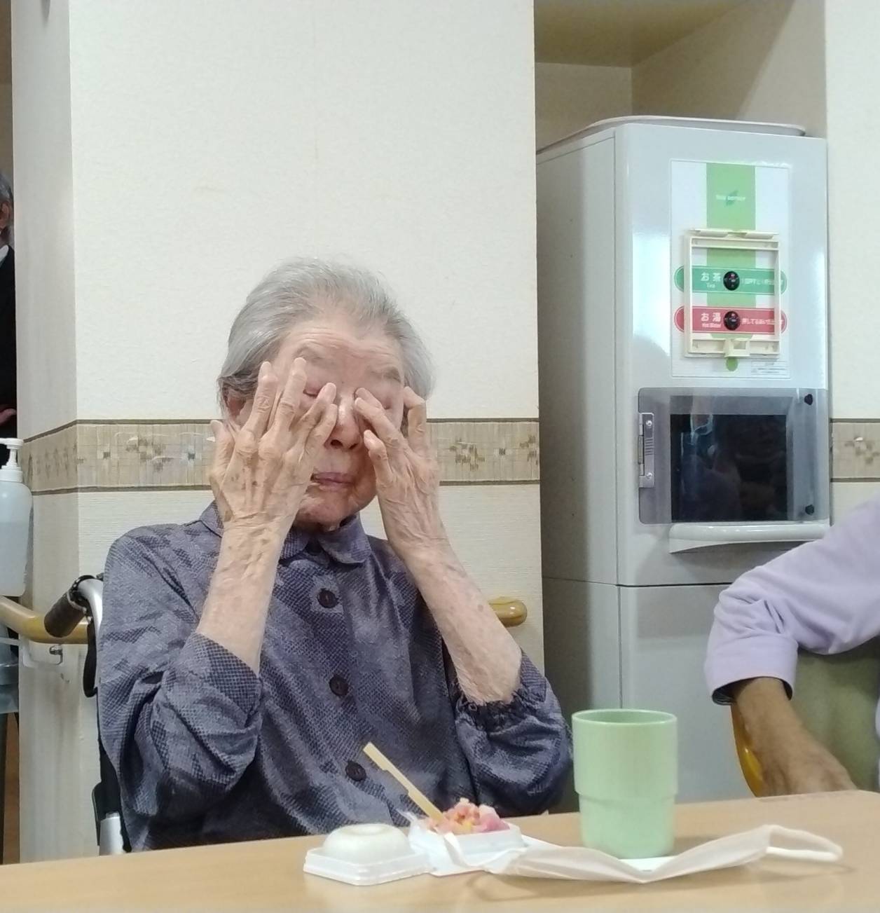 ふと利用者様を見渡すと、大粒の涙を流し聞き入ってるK様。T様は得意の日本舞踊を歌に合わせて踊っています。他の利用者様も「いい声だったな~」「僕も歌は得意ですよ!スナックだったらどんどん歌えるのに」等々、Y様の歌で皆さんから前向きな感想をいただけて職員感動!!
